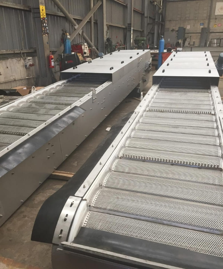 Bant ızgaralar zincir tahriklidir ve sürekli dönen metal kayış katı atıkları atık sudan ayırır.