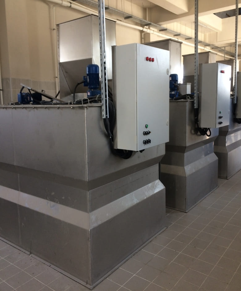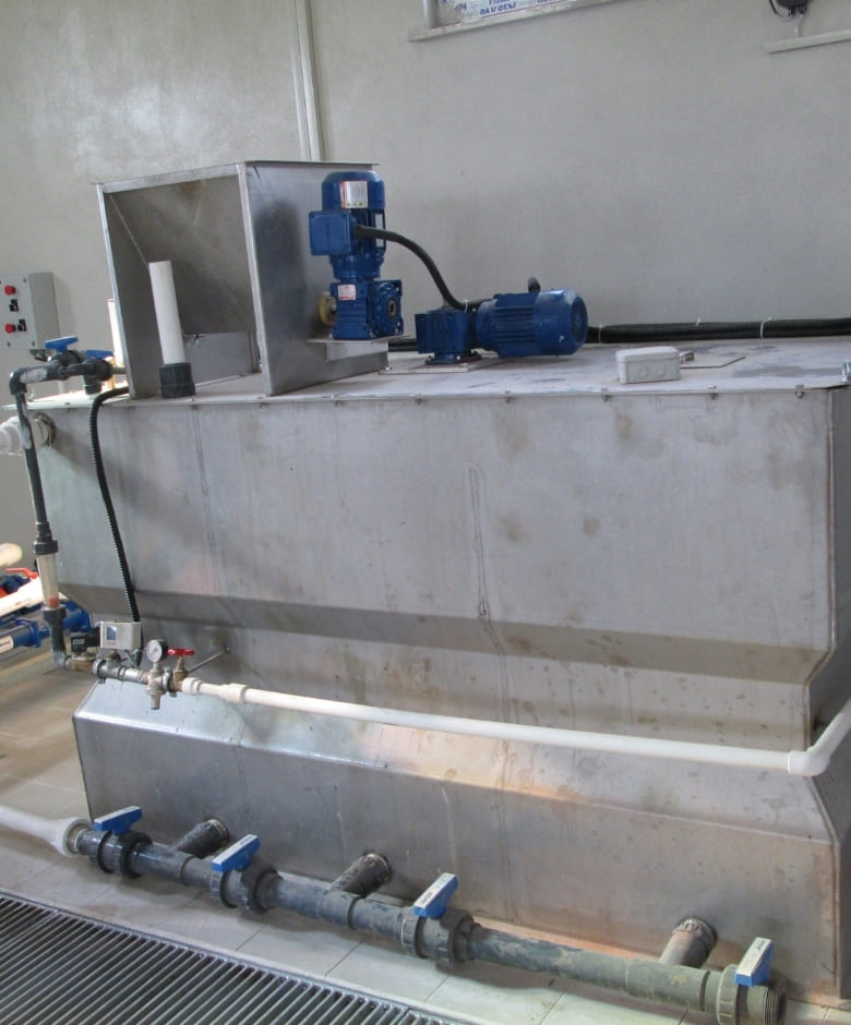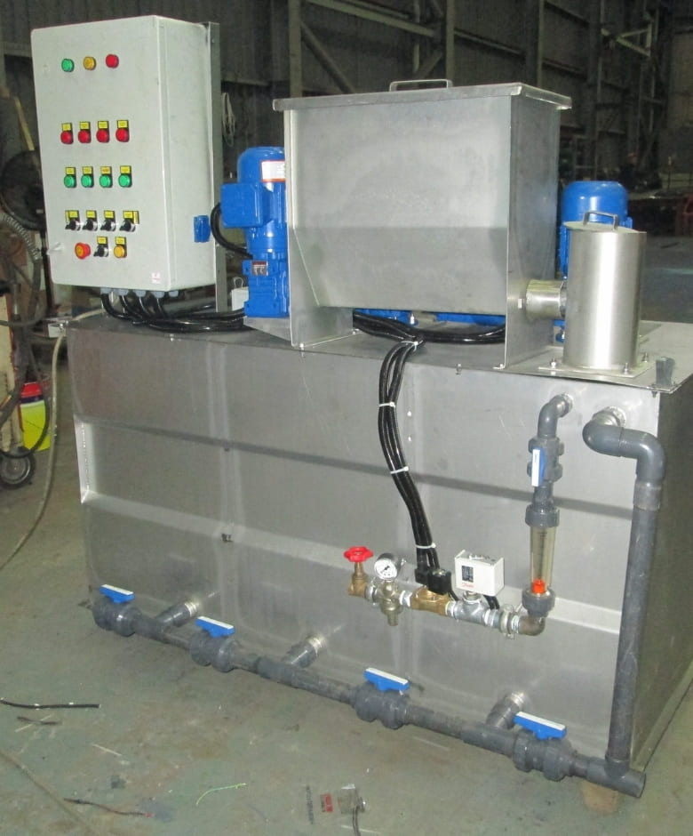 Polielektrolit ve/veya toz tipi kimyasallar hazırlanır ve sisteme dozajlanmak üzere su ile karıştırılır.