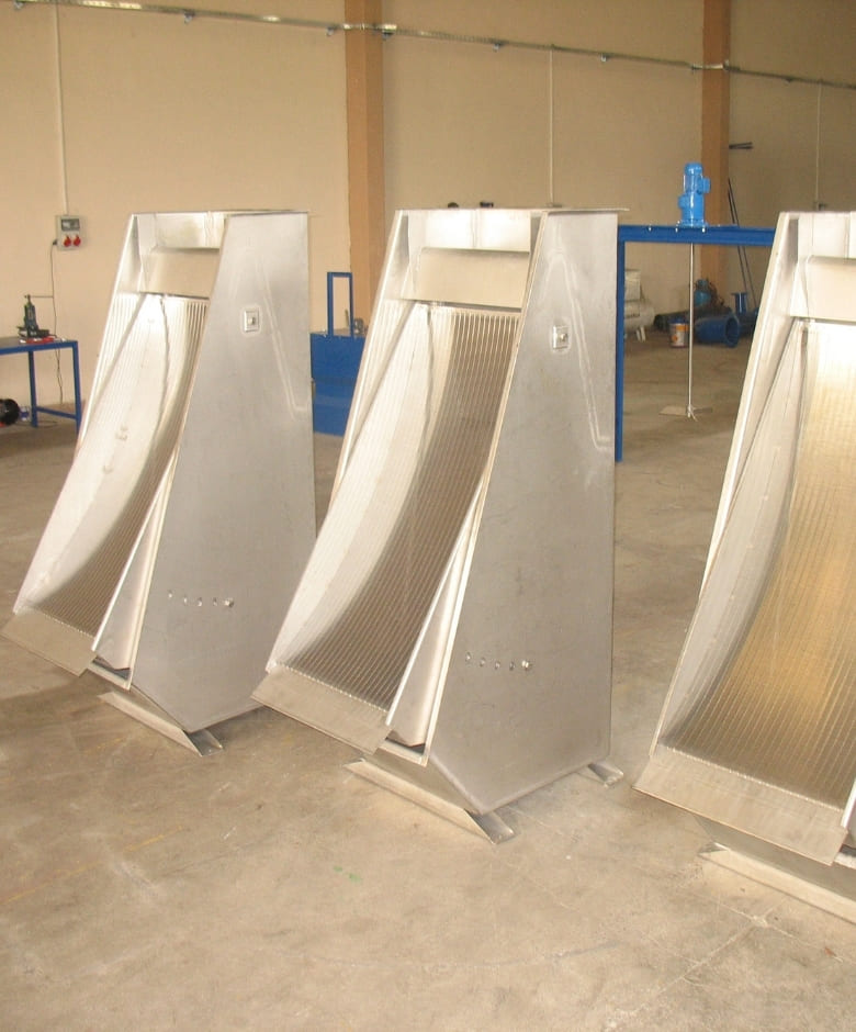 Çoğunlukla çökelebilen katıların uzaklaştırılmasında kullanılırlar ve açılı yüzey, atıkların yerçekimi ile biriktirilmesine yardımcı olur veya elek üzerinde toplanan katı atıkların tırmık tipi cihazlarla uzaklaştırılması sağlanır.